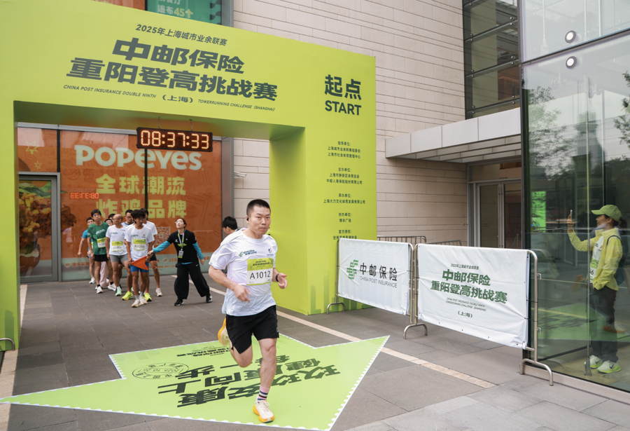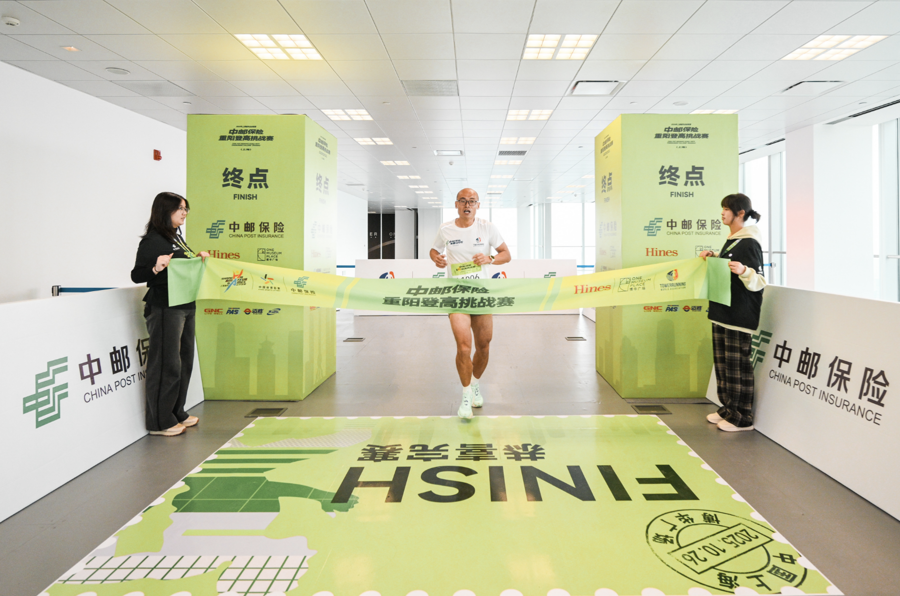 53层楼,1247级台阶,垂直攀升高度209米——10月26日,来自国内外的600余名垂直登高选手齐聚上海市静安区地标博华广场,在2025年中邮保险重阳登高挑战赛中向顶峰发起冲击。