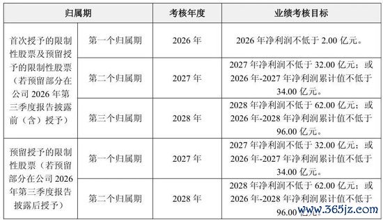 值得一提的是,两份激励方案提出的“公司层面”的业绩考核指标完全一致。在2026年至2028年会计年度中,公司每年度需分别实现相应的净利润。其中,2026年净利润不低于2亿元。2027年净利润不低于32亿元;或2026年至2027年净利润累计值不低于34亿元。2028年净利润不低于62亿元;或2026年至2028年净利润累计值不低于96亿元。
