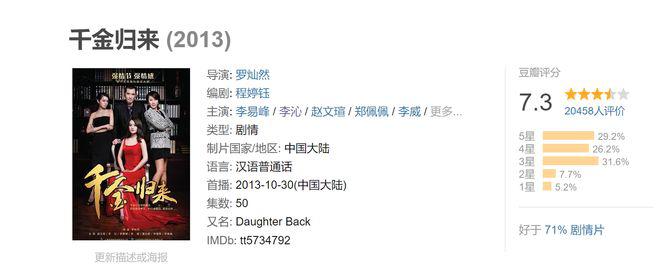 在李沁后来的 7 年当中,有热度、有口碑的只有两部剧,一部是 2013 年的都市复仇剧《千金归来》,另一部是 2015 年年代剧《白鹿原》。